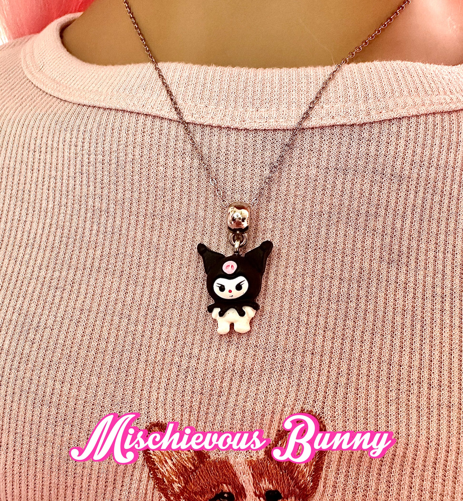 Perfect for anyone with a mischievous streak and a love for all things kawaii. Made with a Hypoallergenic stainless steel 18" chain, featuring a lobster clasp closure. This necklace is a standout accessory that exudes personality.
