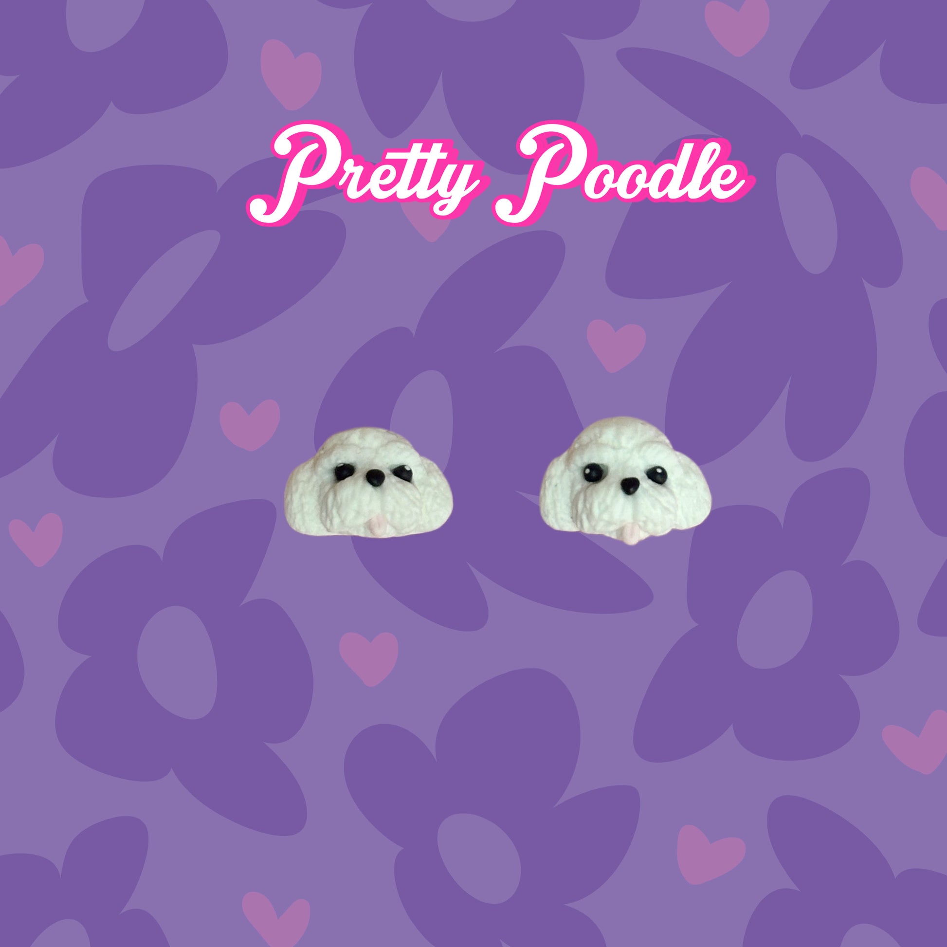 These precious stud earrings feature tiny, hand-sculpted poodle faces with curly white fur, sparkly black eyes, and the cutest little pink tongue. Each pair is lovingly crafted from polymer clay to showcase the sweet personality of a playful poodle, perfect for dog lovers and kawaii accessory fans alike.