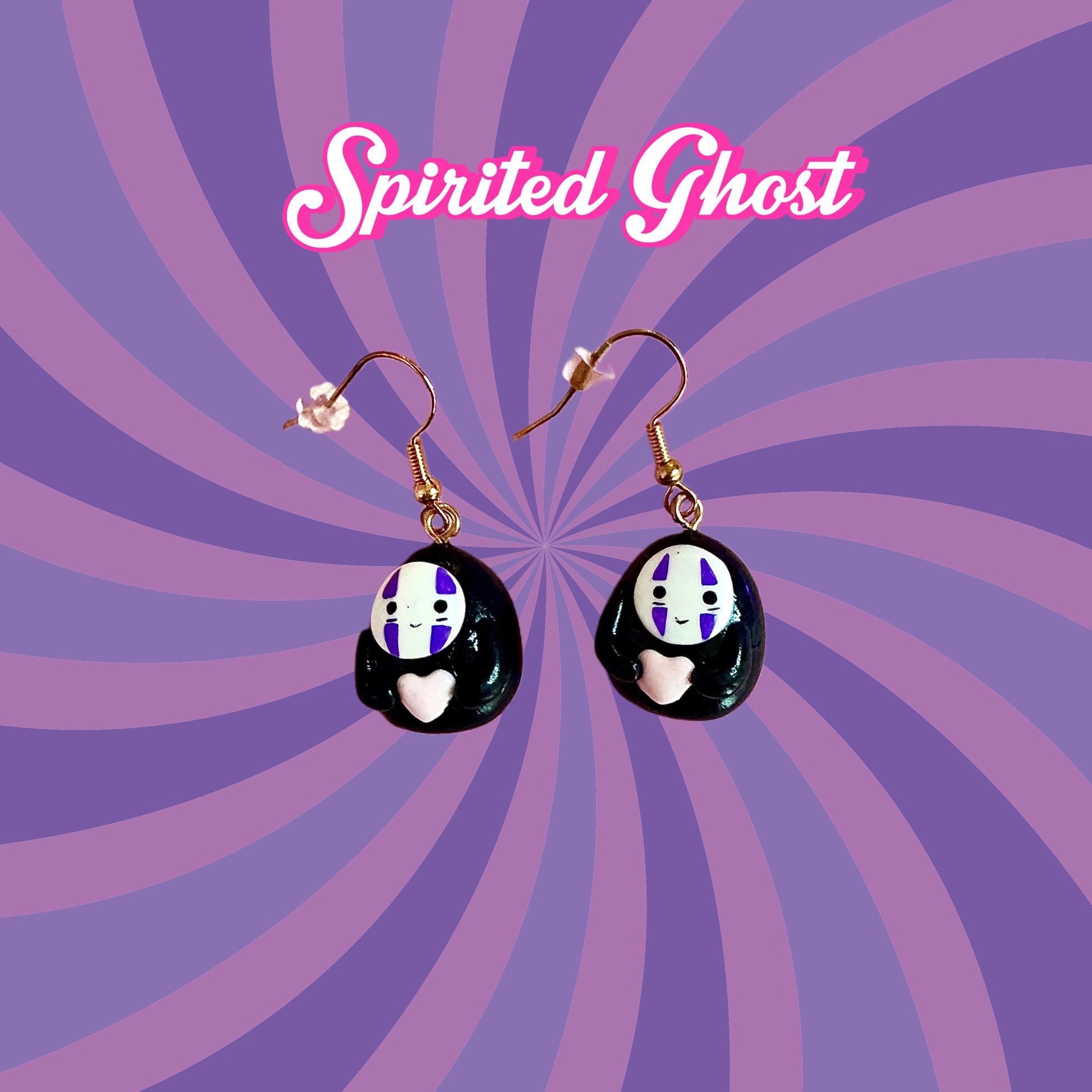 Step into the spirit realm with our Spirited Ghost dangle earrings — a hauntingly cute tribute to your favorite quiet soul. These handmade polymer clay charms feature a cloaked ghostly figure clutching a soft pastel heart, bringing just the right blend of mystery, magic, and kawaii energy to your look.